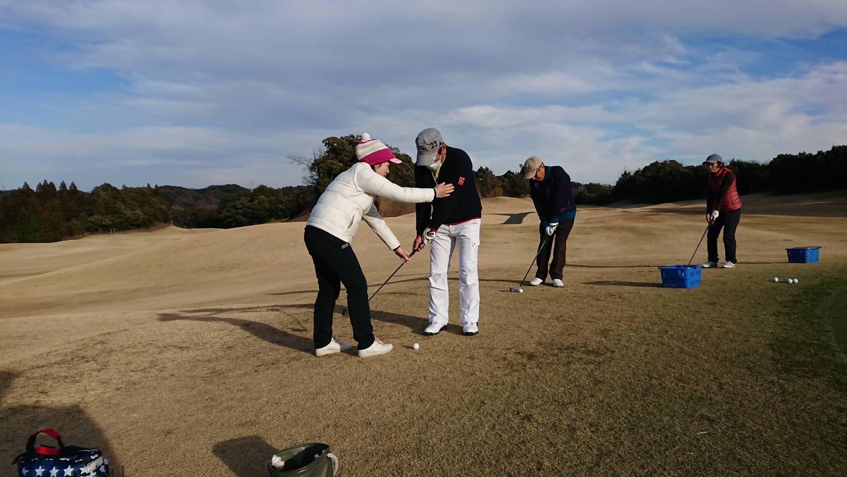 一月なのに、暖かくて、春のようにゴルフ日和、ラウンドレッスン、1日フリーにしました、それぞれ 自分の課題を克服の特訓ですね、じっくり、ゆっくり、少しずつ、感覚が出てきます。まだまだ足りない...と生徒さん達のやる気に感心です!