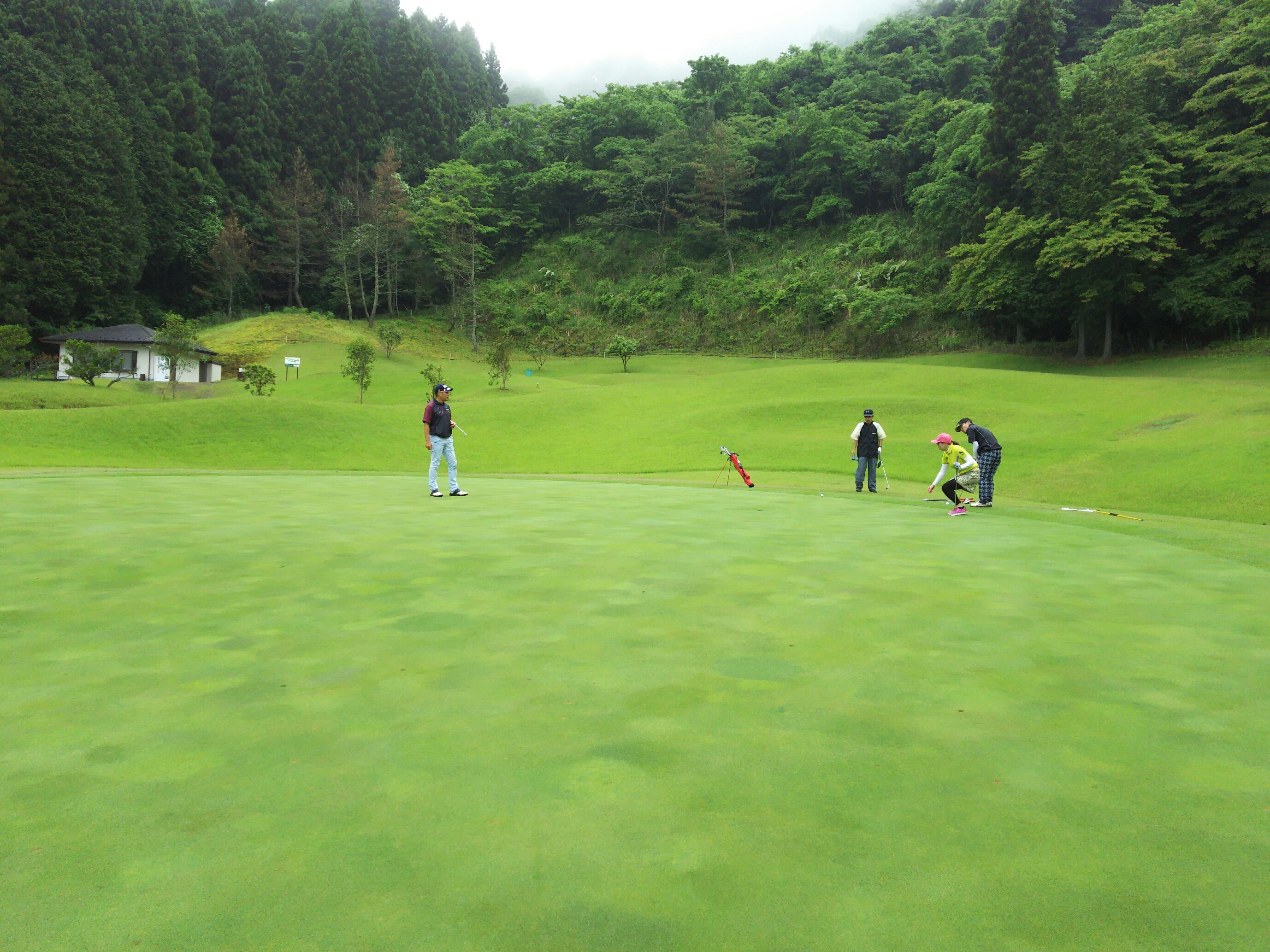 雨に降られずに、午前中は芝生で練習、午後は本コース9ホールまわり、充実した1日を送りました。